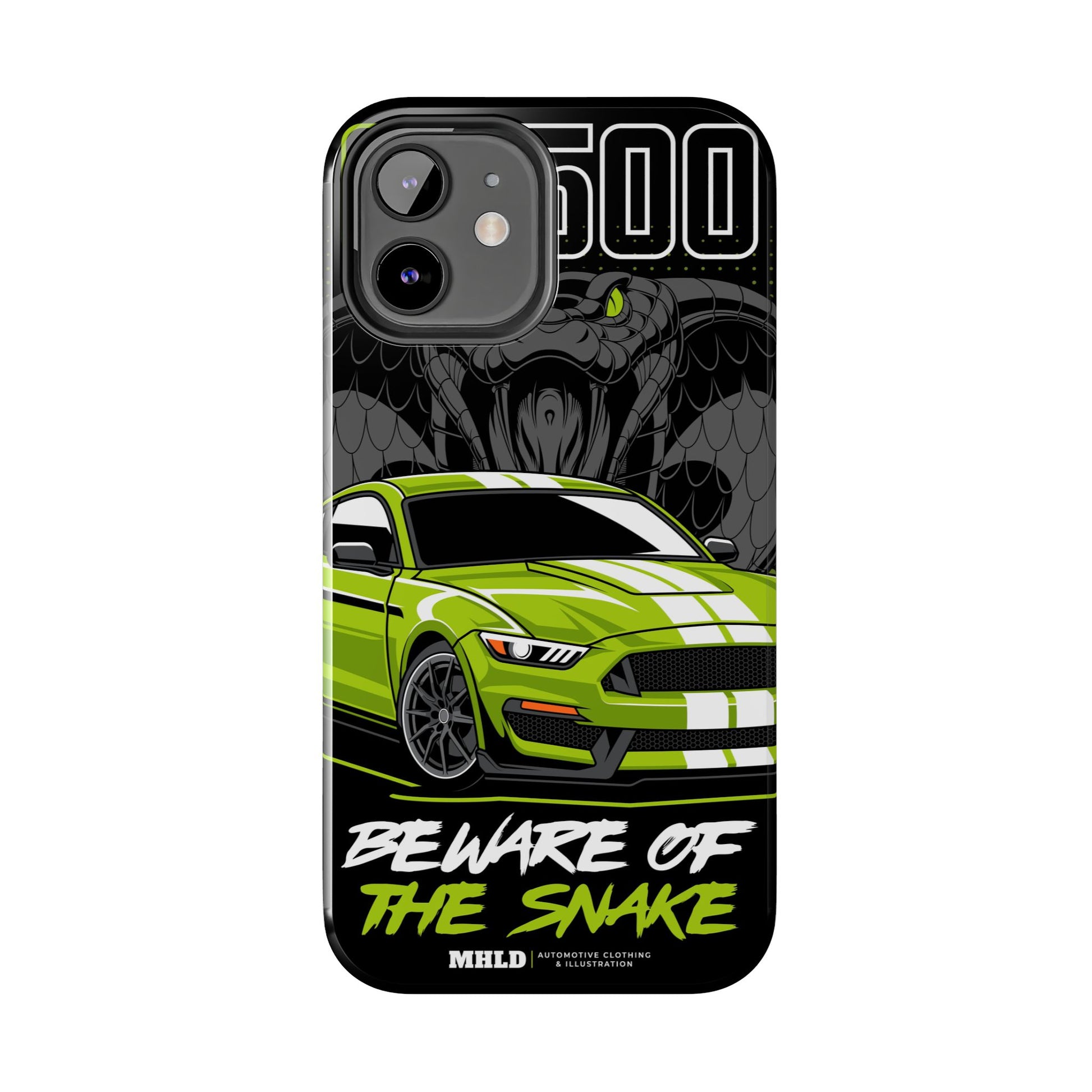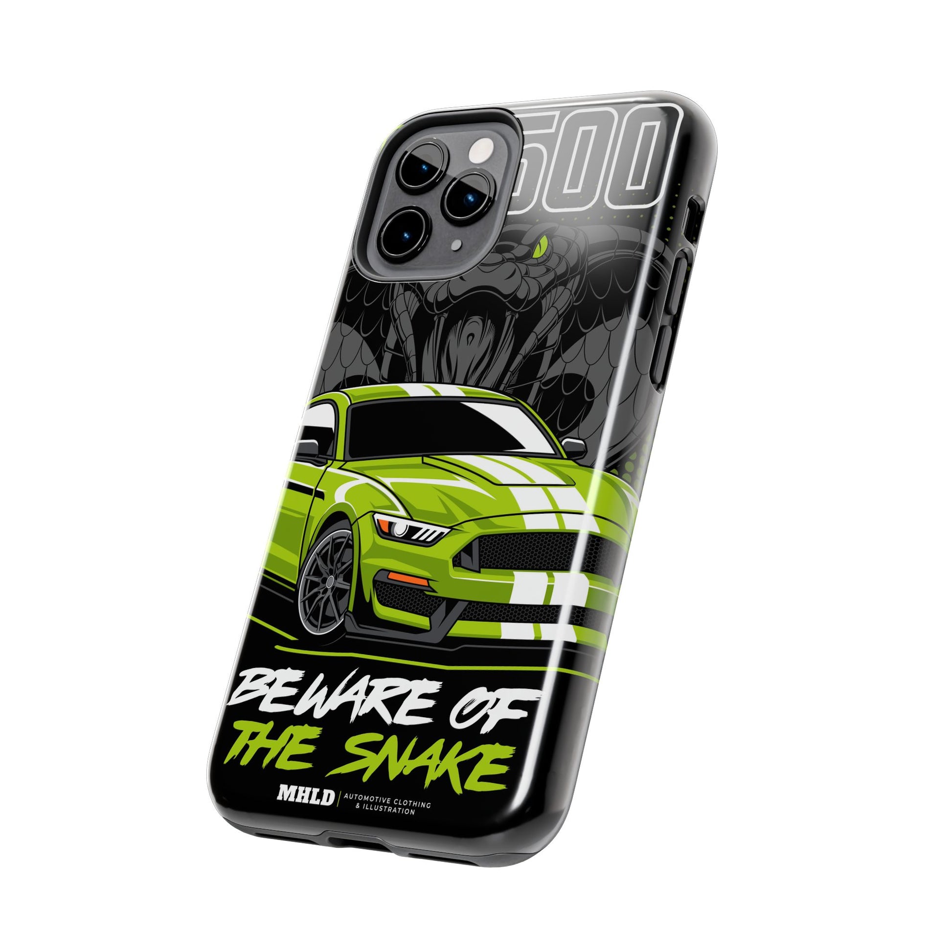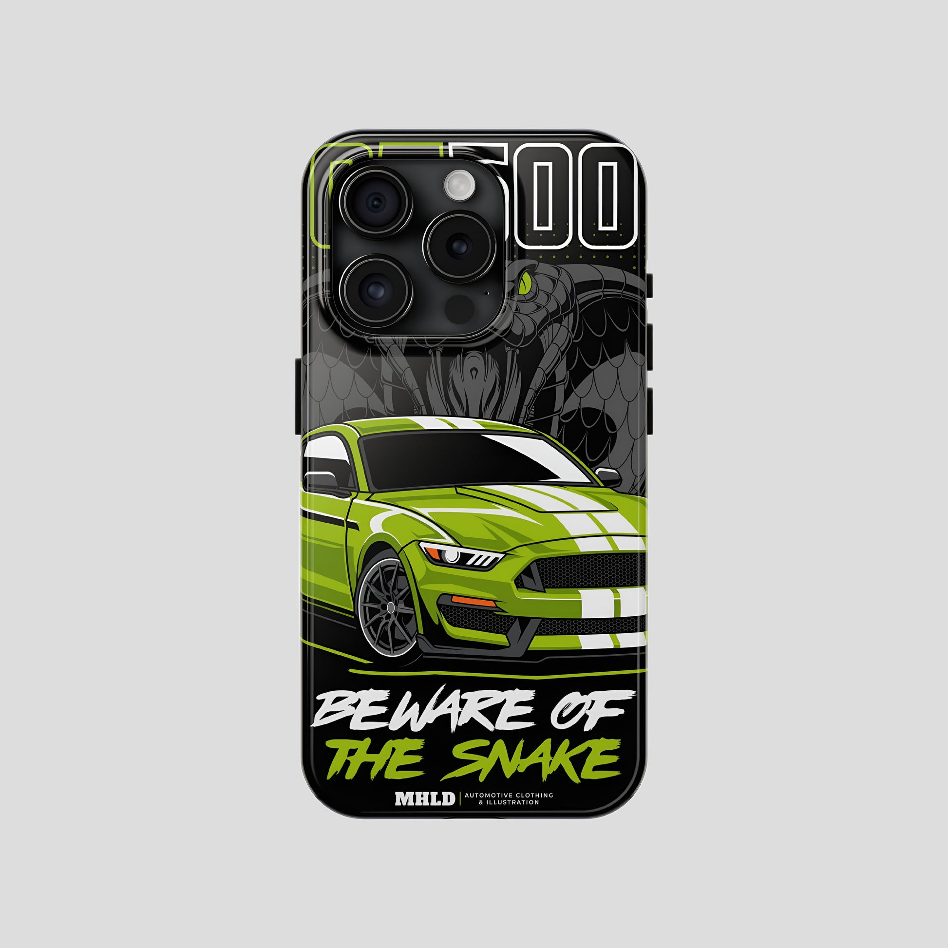 This rugged phone case channels racetrack energy with bold graphics and uncompromising protection. A high-contrast muscle car in neon green bursts forward across a glossy black background, while a coiled snake motif and the headline “Beware of the Snake” give the design an aggressive, spirited edge. The two-piece construction — a tough polycarbonate shell over a shock-absorbing TPU liner — keeps your device safe from everyday drops and bumps. The raised, lay-flat bezel shields the screen from scratches when placed face-down, and UV-resistant inks keep the image vivid through sun and weather exposure. Lightweight and responsive, the case supports wireless charging so you can power up without removing it. For drivers, car enthusiasts, and anyone who loves bold automotive flair, this case adds personality and real-world protection to your phone.