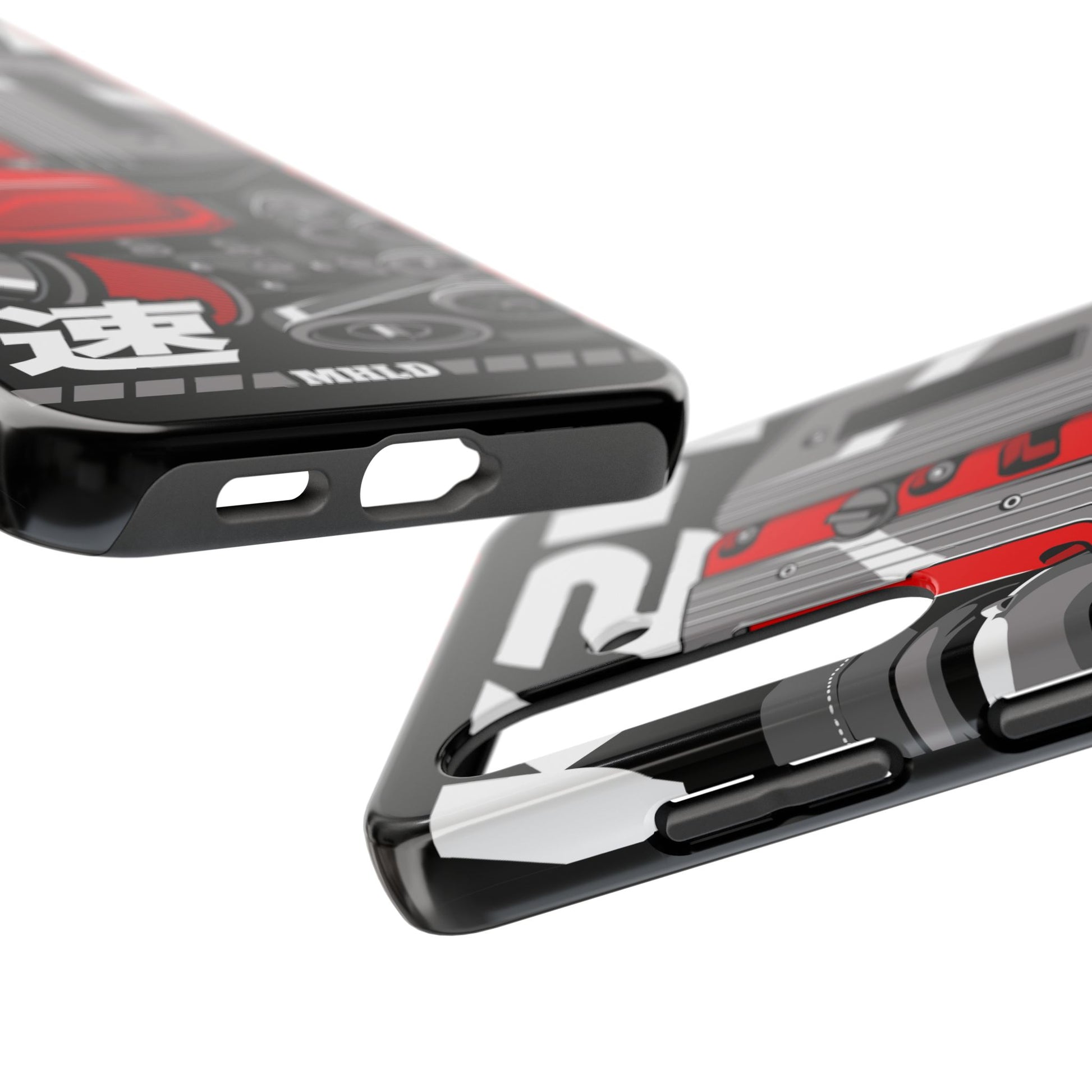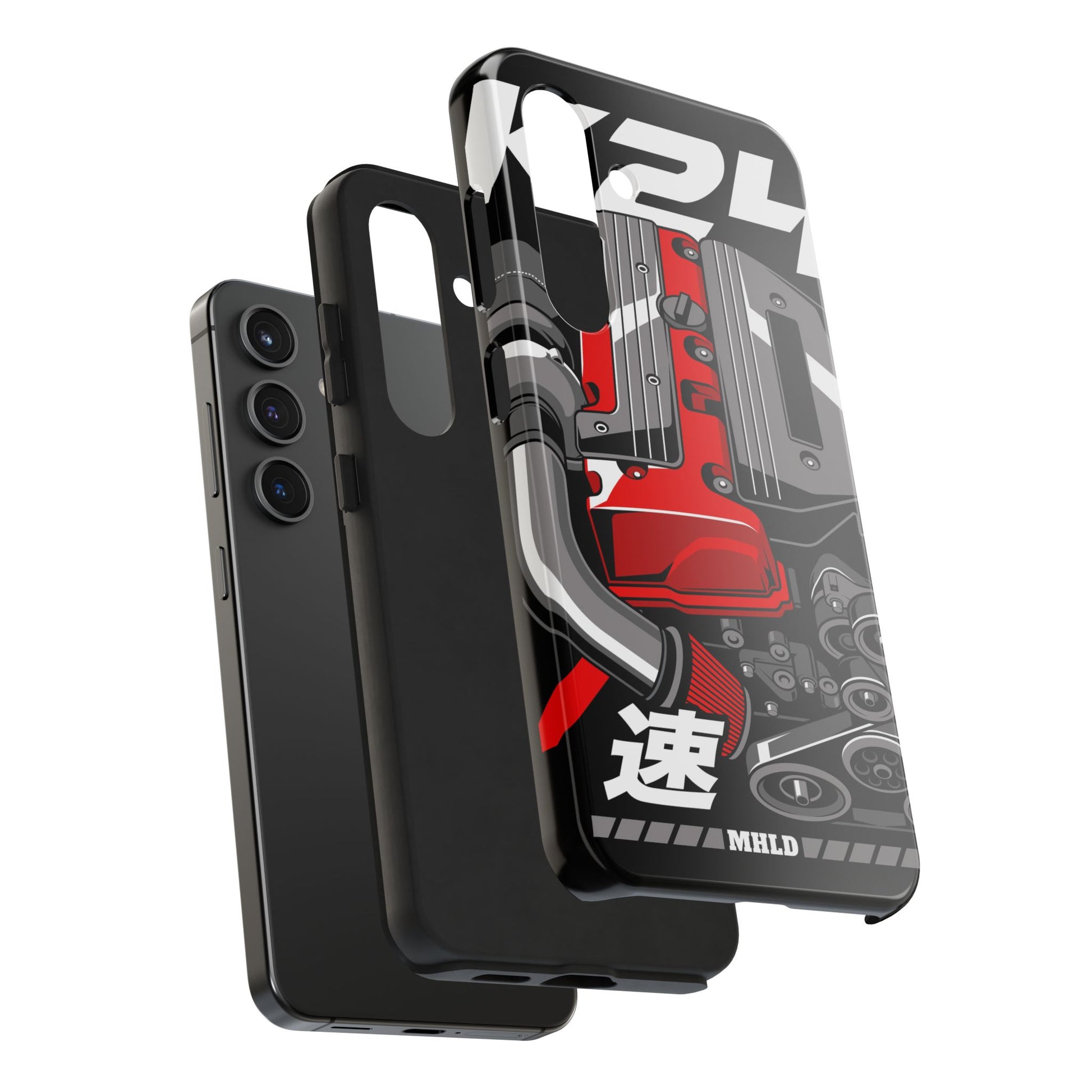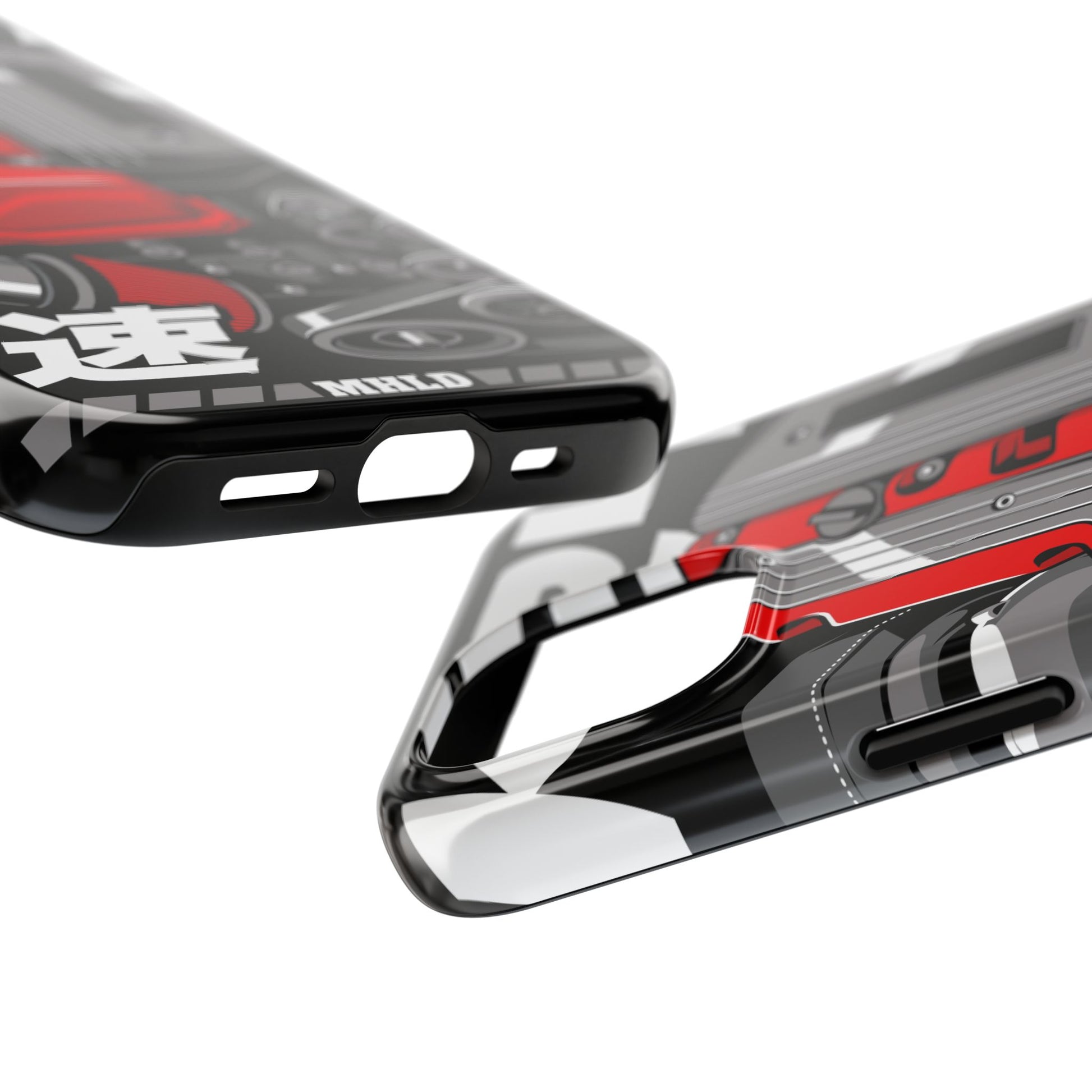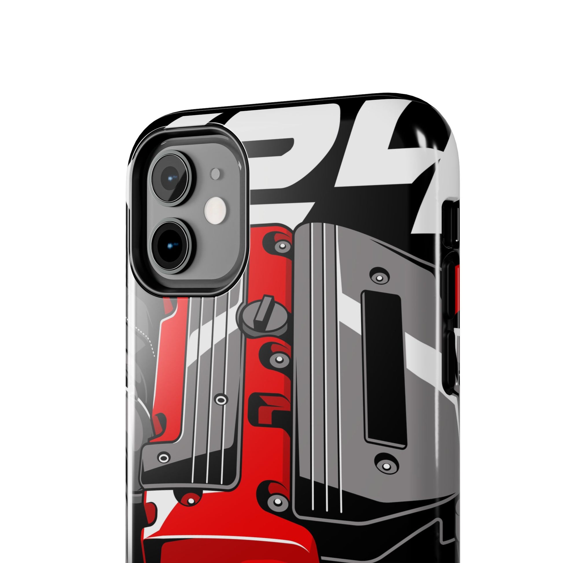 This slim, glossy phone case brings racing energy to everyday carry. Bold red engine components leap from a high-contrast black-and-white backdrop, styled with manga-inspired speed motifs for an unmistakable tuner-car vibe. The two-piece construction pairs a rigid polycarbonate shell with a flexible TPU liner that cushions drops while the raised bezel helps keep the screen safe when you set it face-down. UV protection keeps colors sharp through sun and weather, and the gloss finish makes the artwork pop. It slips onto compatible phones without adding bulk and supports wireless charging so you can juice up without removing the case. For drivers, gearheads, and street-style fans who want their phone to reflect their love of speed and mechanical detail, this case reads loud and clear.