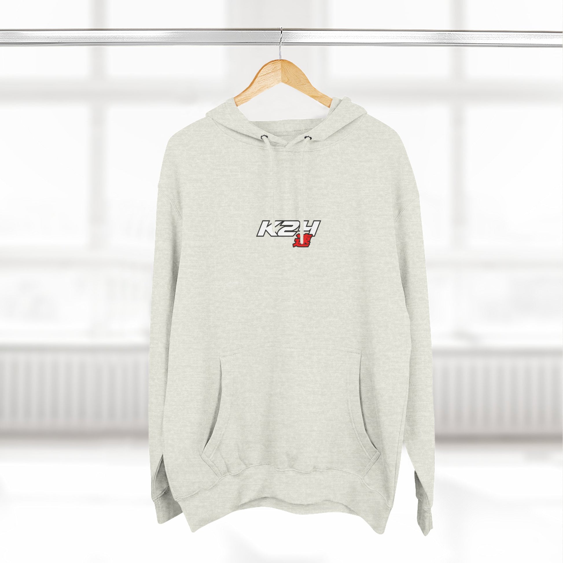 This mid-weight hoodie blends clean streetwear lines with car-culture energy. The front carries a subtle K24 logo over the heart, while the back showcases a bold, detailed engine illustration in red, black and graphite — a graphic that reads like a mechanic’s sketch turned into art. The fleece feels soft against the skin and holds its shape thanks to twill neck tape and reinforced topstitching. A roomy kangaroo pocket and adjustable hood add everyday comfort, while embroidery options let you add a tidy stitched badge on the chest. It sits as a regular fit with minimal shrinkage, built to wear to car meets, late-night wrench sessions, or simply cruising around town.