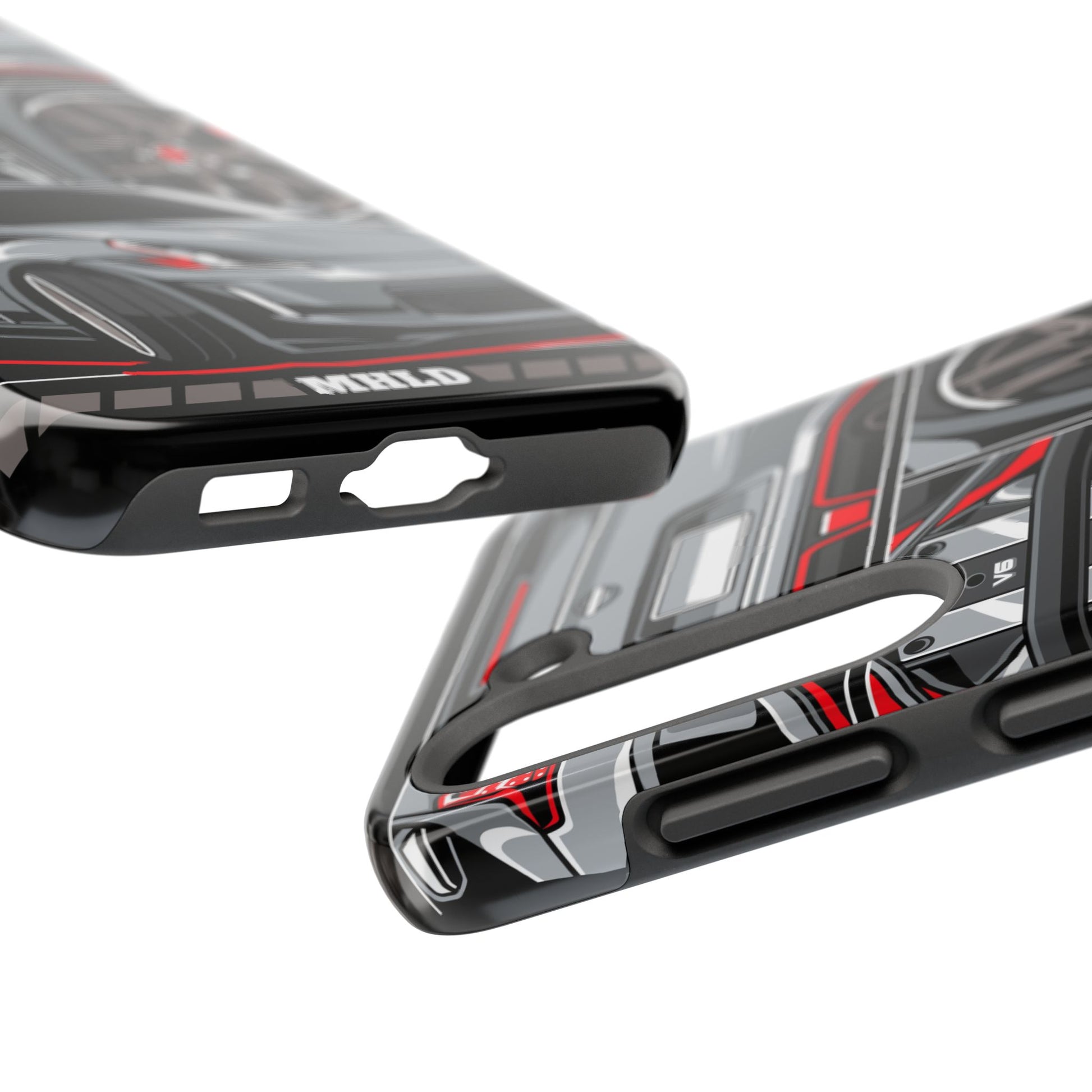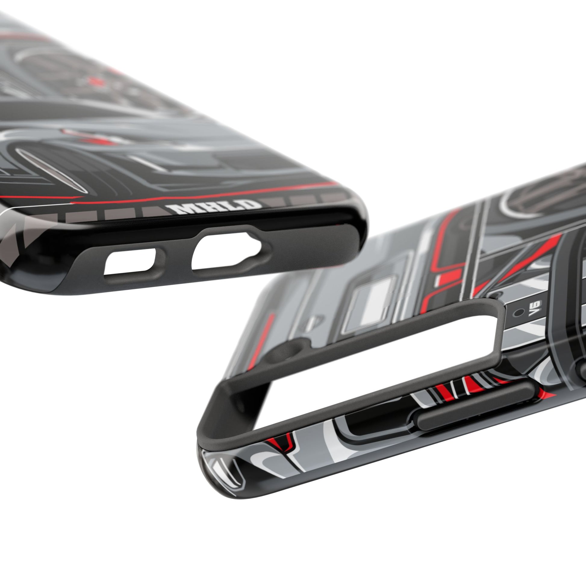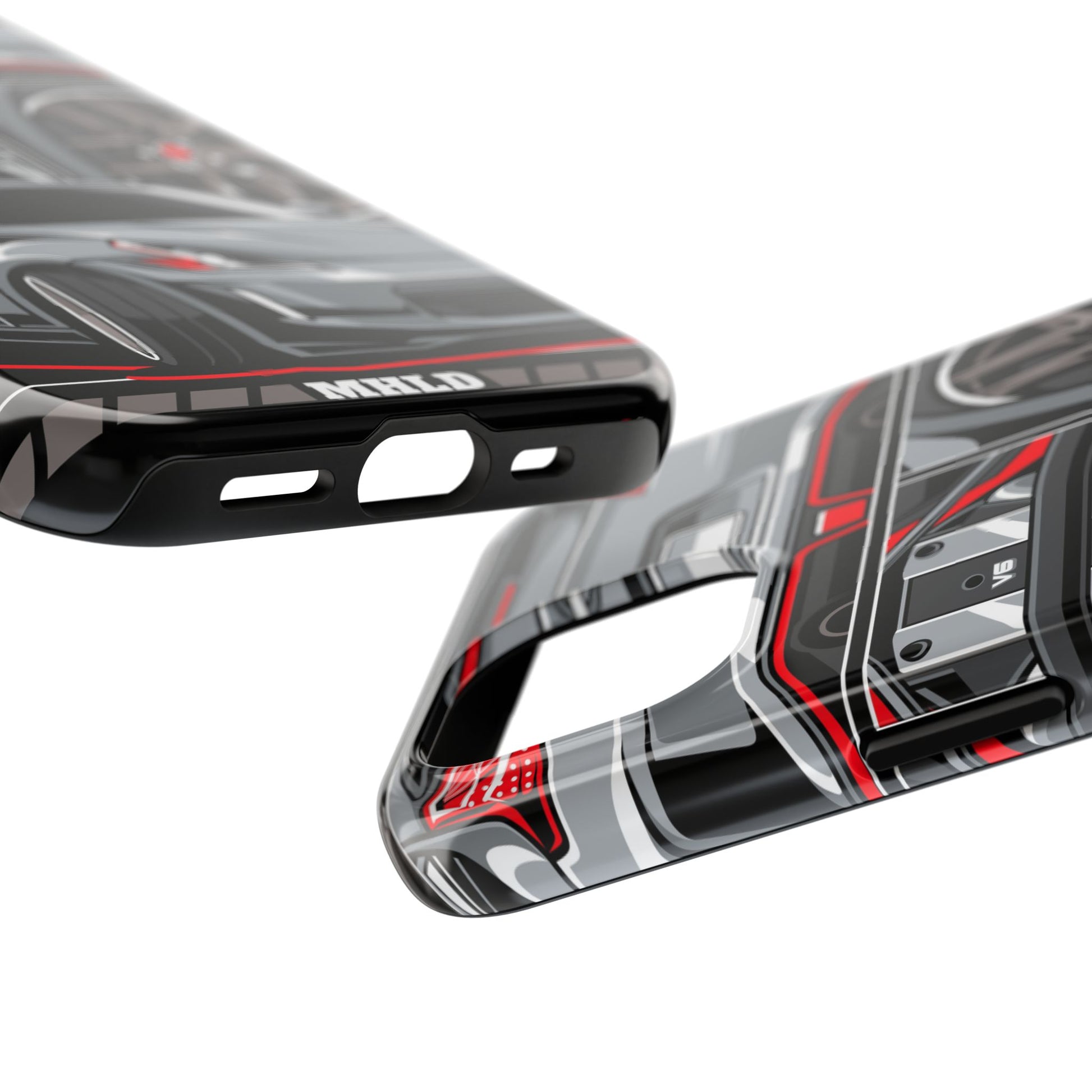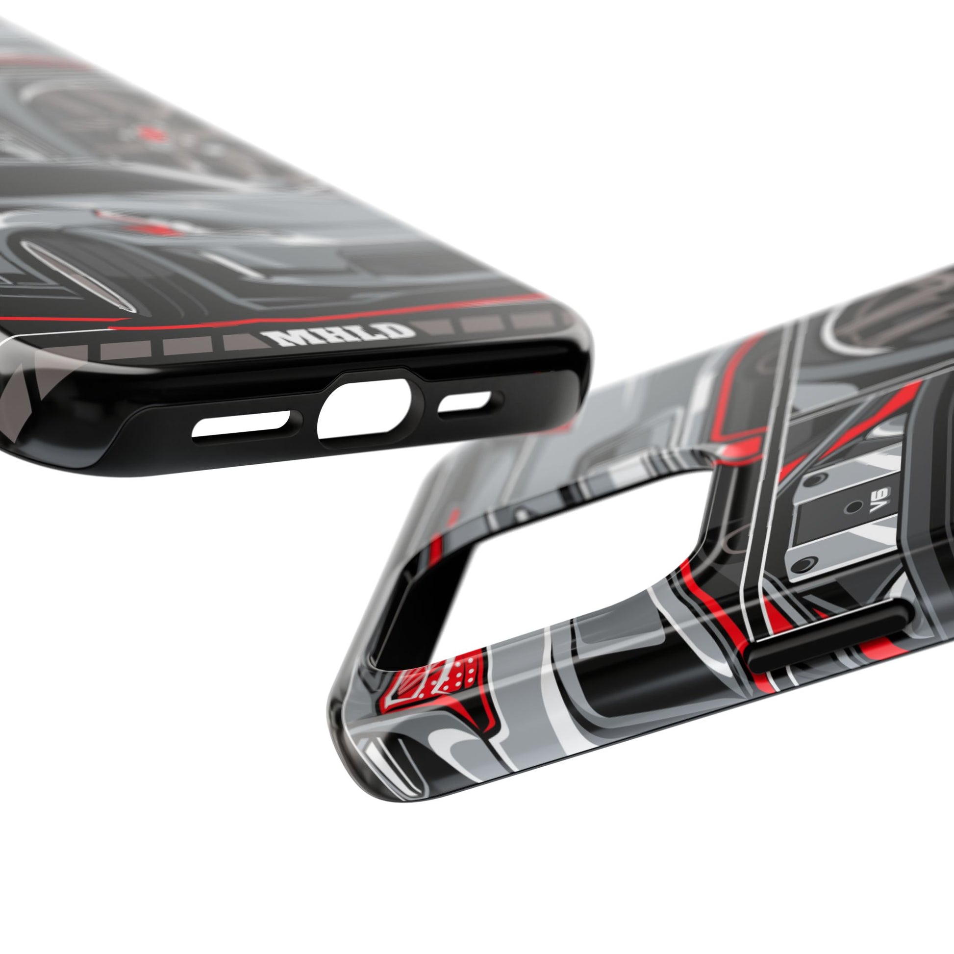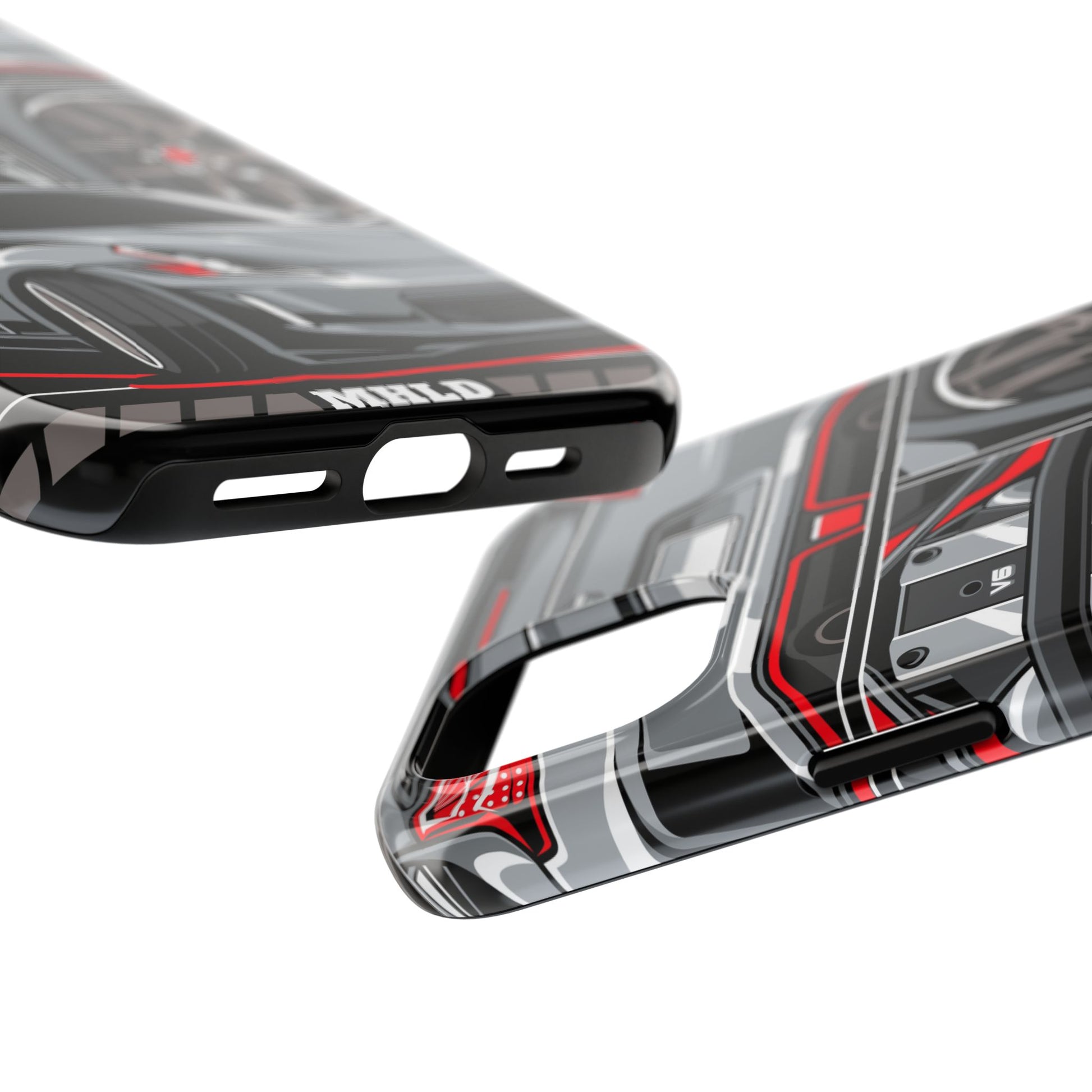 This slim, glossy phone case brings street-tuned attitude to your everyday carry. Bold automotive art wraps the polycarbonate shell in layered panels of a lowered sports car, wheel detail and mechanical accents rendered in crisp grayscale with pops of red. The two-piece construction—rigid Lexan outer and flexible TPU liner—locks the design into a shock-absorbing system that lays flat against surfaces while the raised bezel helps keep the screen off rough surfaces. Weather-resistant UV protection preserves the vibrant print so the artwork stays sharp through drives, washes and sun-soaked days. It’s lightweight, supports wireless charging, and fits like a second skin for drivers and car-enthusiasts who want their phone to match the garage vibe.