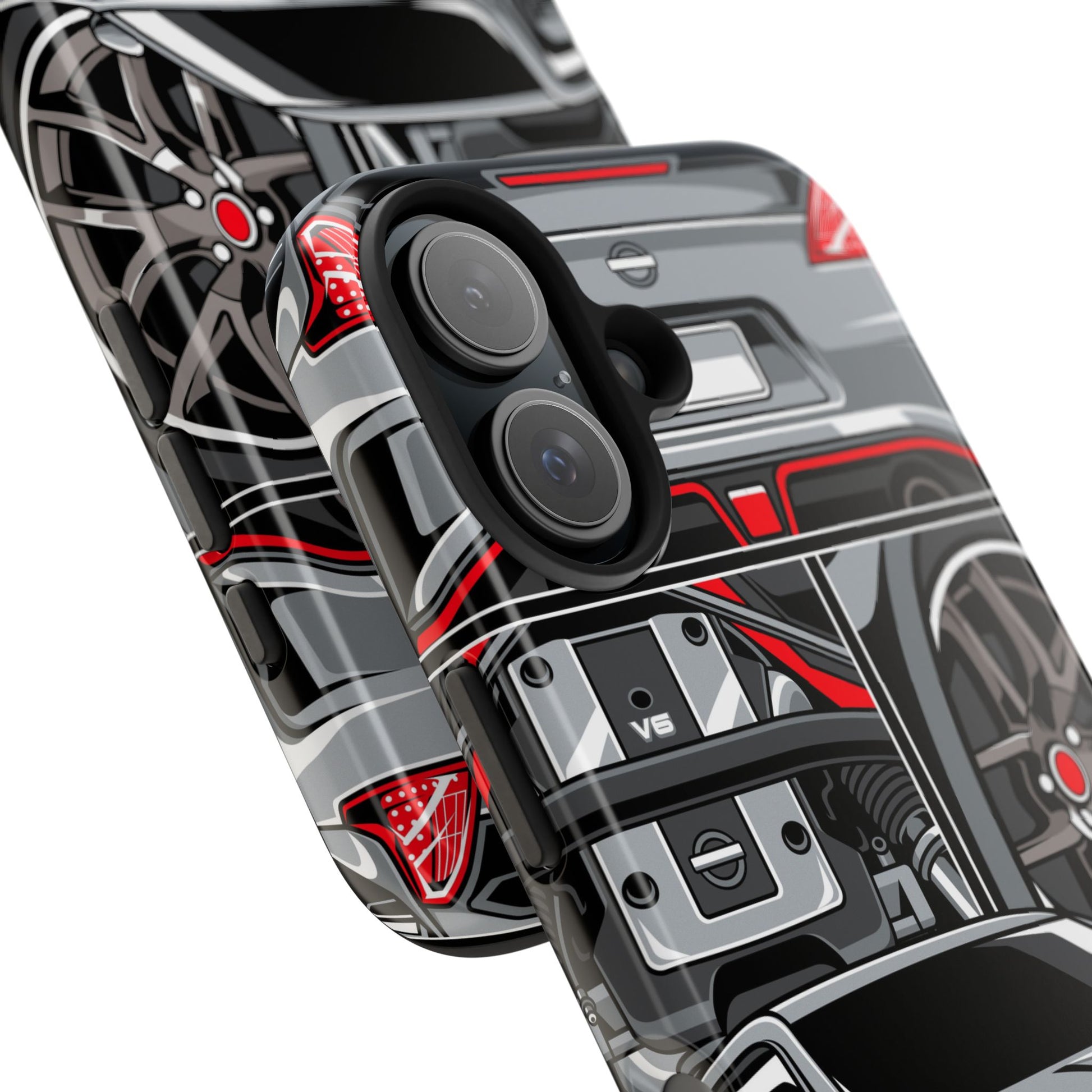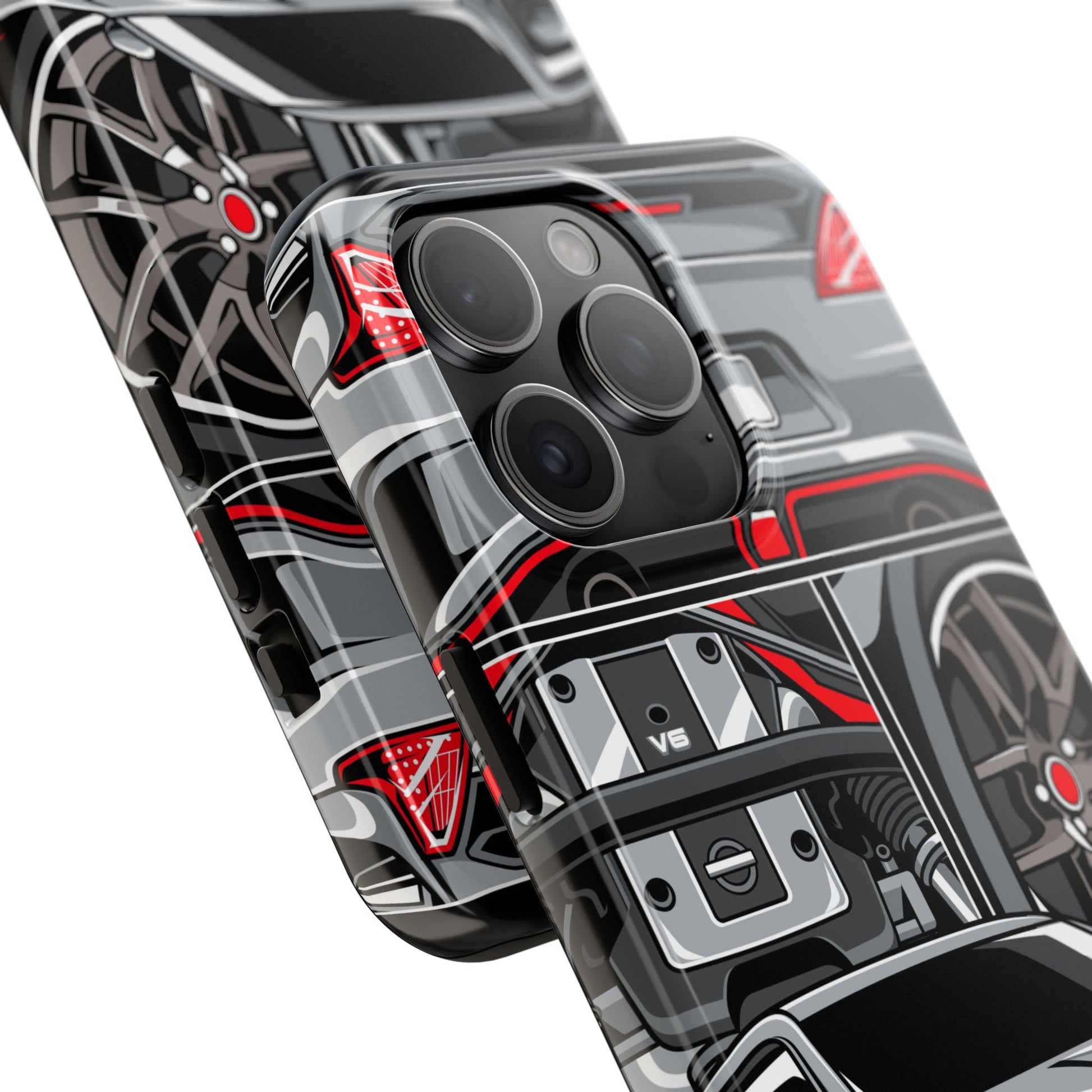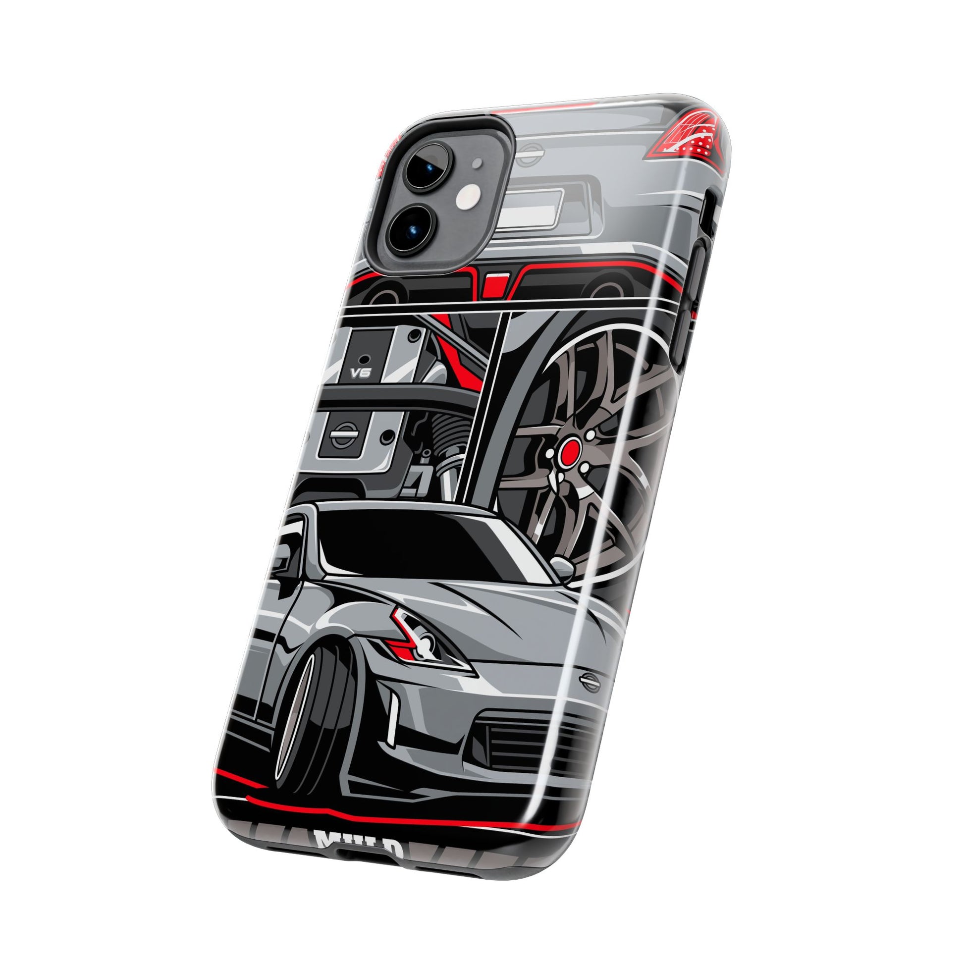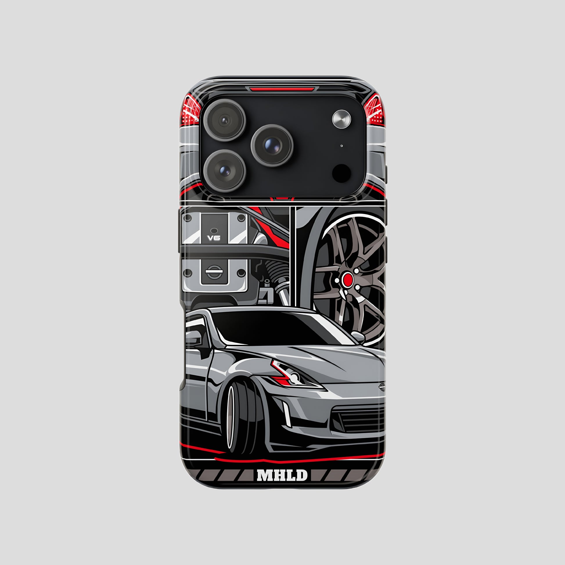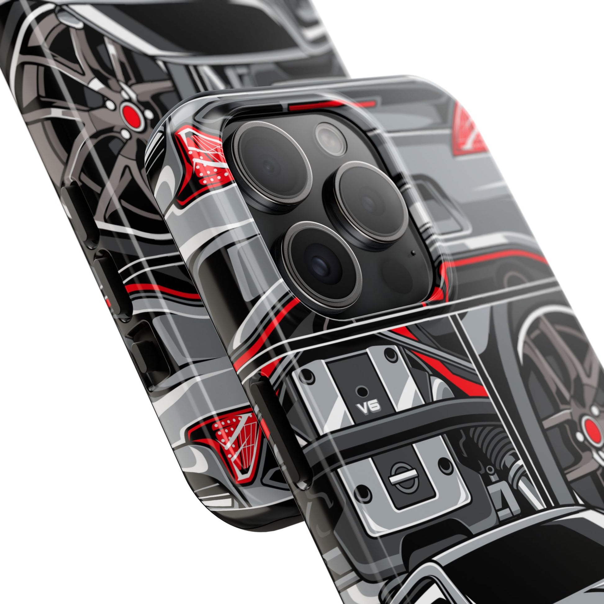 This slim, glossy phone case brings street-tuned attitude to your everyday carry. Bold automotive art wraps the polycarbonate shell in layered panels of a lowered sports car, wheel detail and mechanical accents rendered in crisp grayscale with pops of red. The two-piece construction—rigid Lexan outer and flexible TPU liner—locks the design into a shock-absorbing system that lays flat against surfaces while the raised bezel helps keep the screen off rough surfaces. Weather-resistant UV protection preserves the vibrant print so the artwork stays sharp through drives, washes and sun-soaked days. It’s lightweight, supports wireless charging, and fits like a second skin for drivers and car-enthusiasts who want their phone to match the garage vibe.