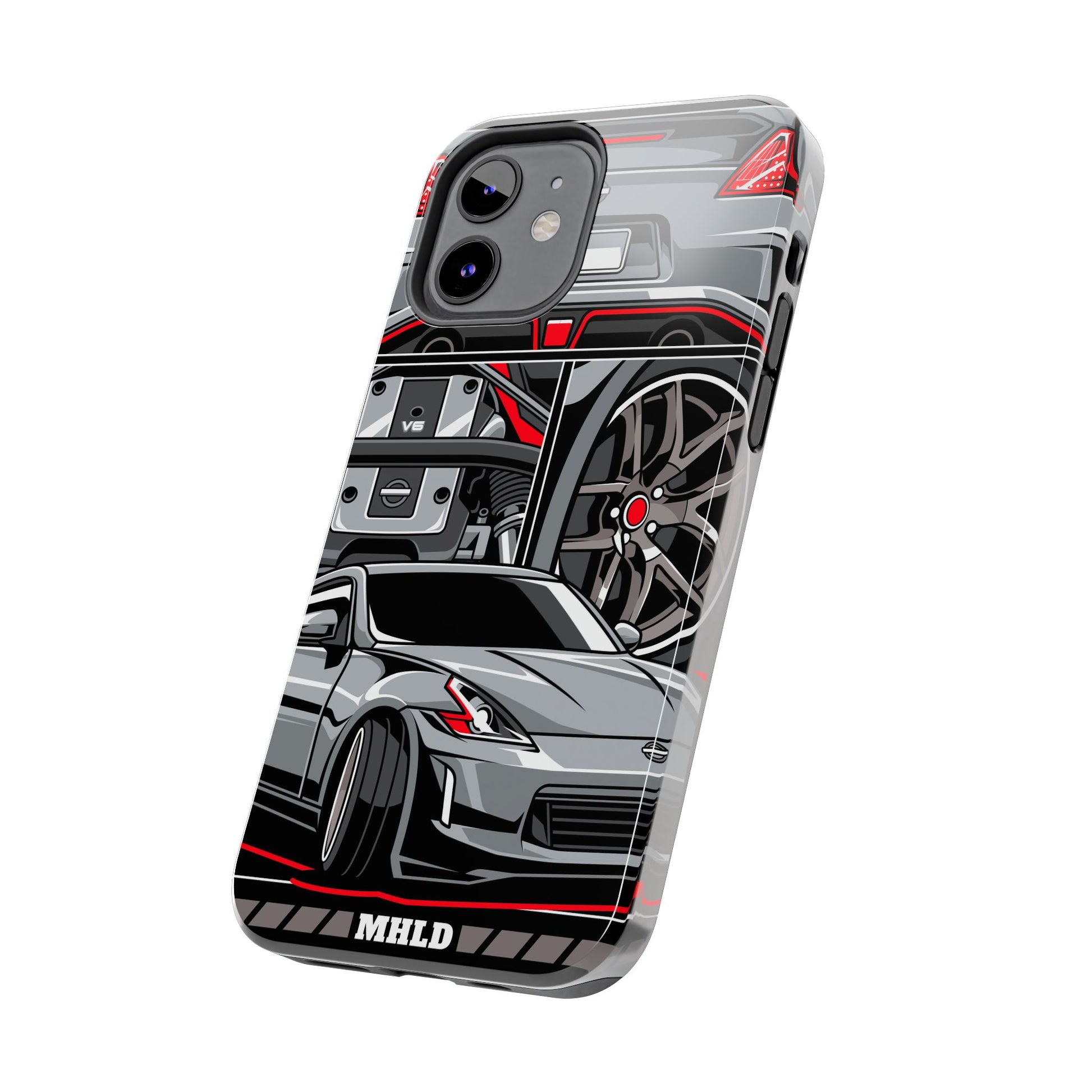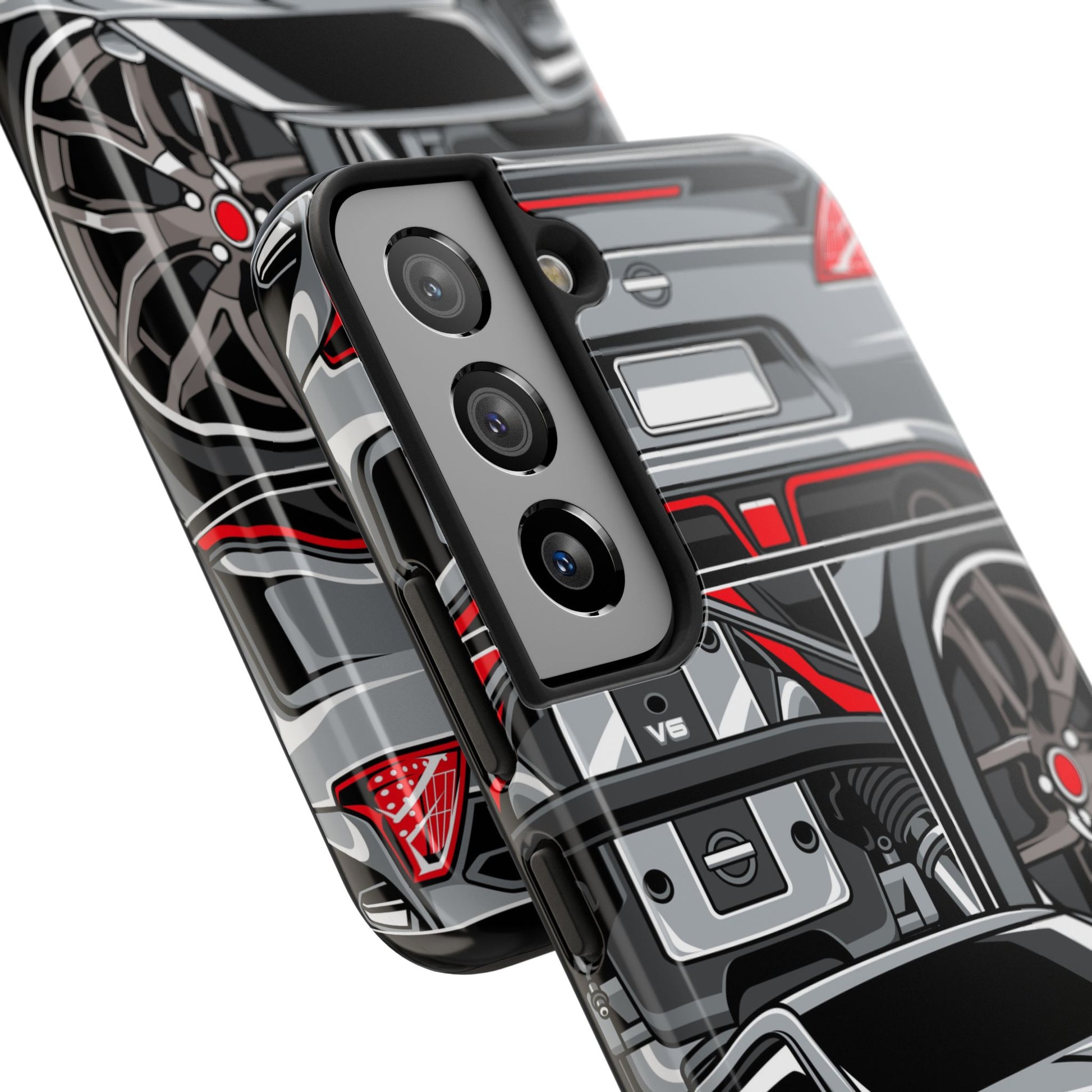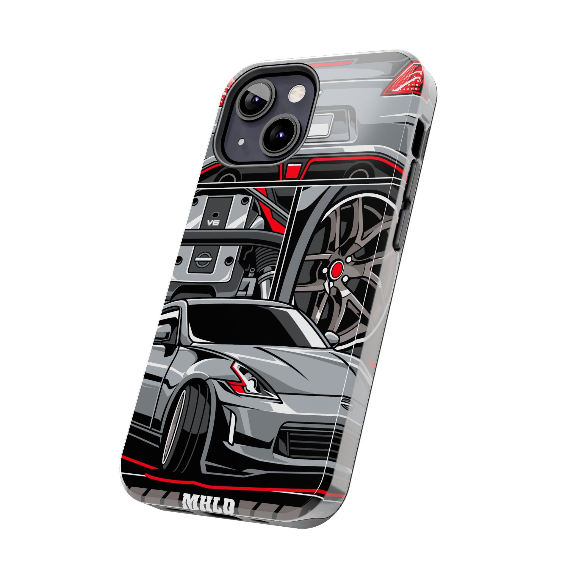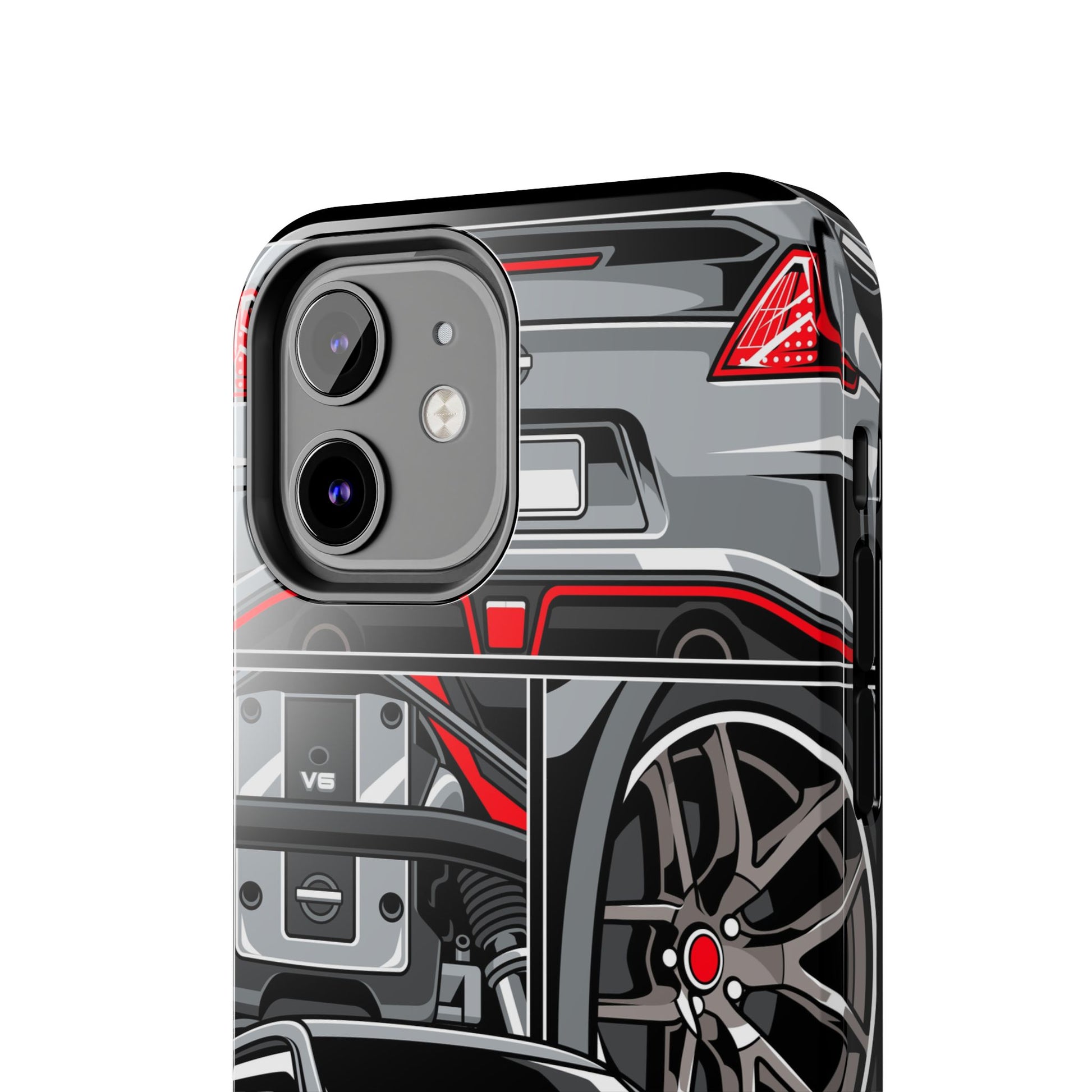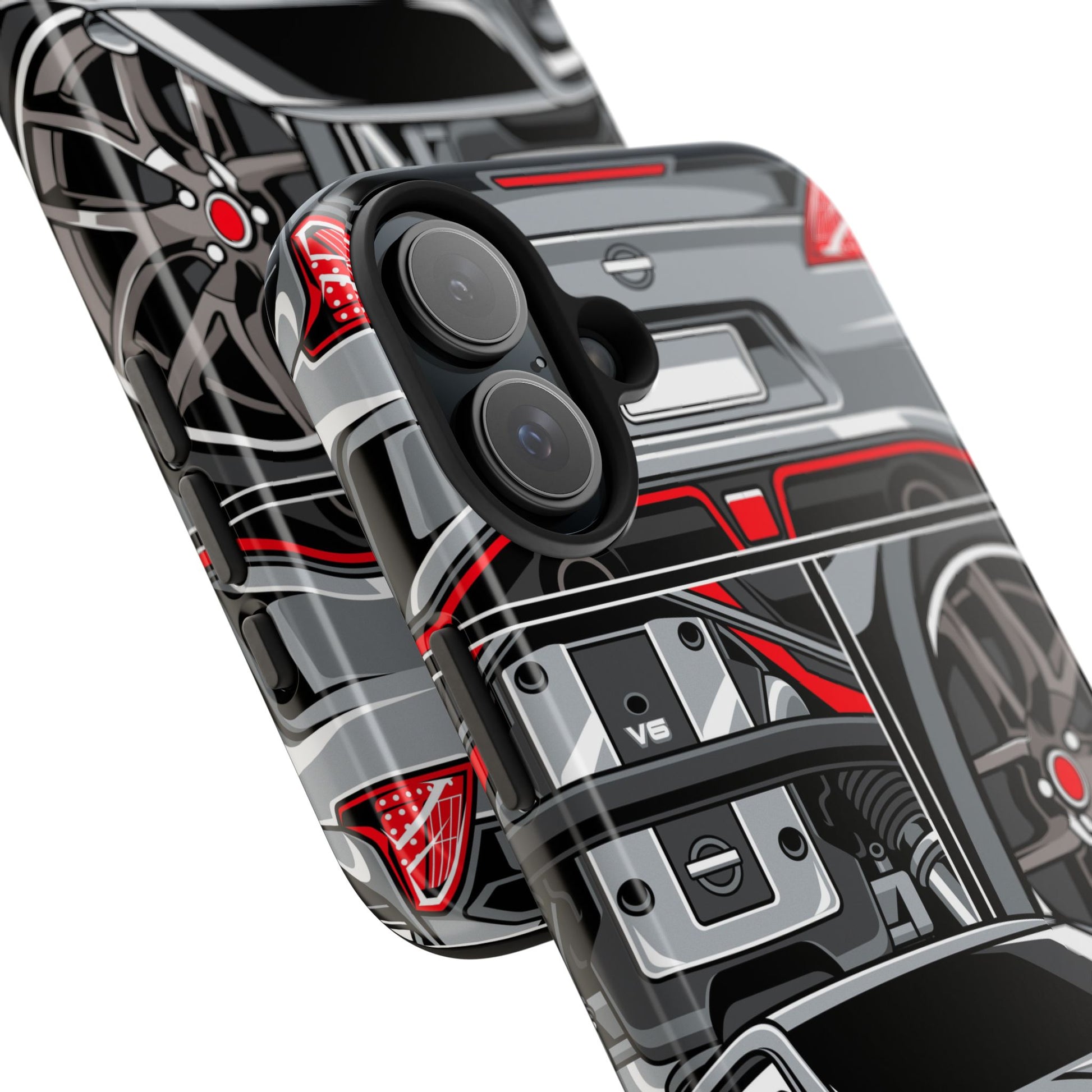This slim, glossy phone case brings street-tuned attitude to your everyday carry. Bold automotive art wraps the polycarbonate shell in layered panels of a lowered sports car, wheel detail and mechanical accents rendered in crisp grayscale with pops of red. The two-piece construction—rigid Lexan outer and flexible TPU liner—locks the design into a shock-absorbing system that lays flat against surfaces while the raised bezel helps keep the screen off rough surfaces. Weather-resistant UV protection preserves the vibrant print so the artwork stays sharp through drives, washes and sun-soaked days. It’s lightweight, supports wireless charging, and fits like a second skin for drivers and car-enthusiasts who want their phone to match the garage vibe.