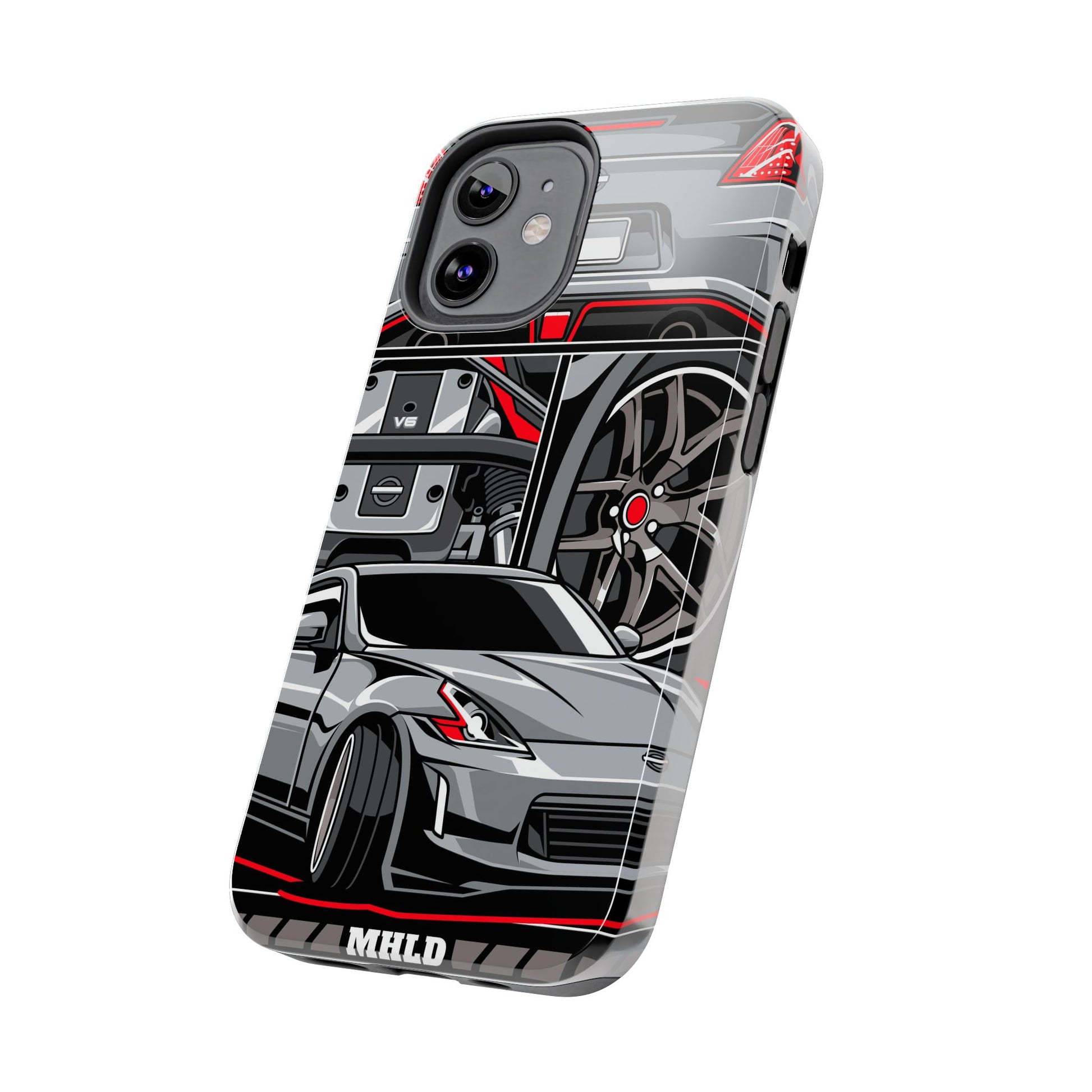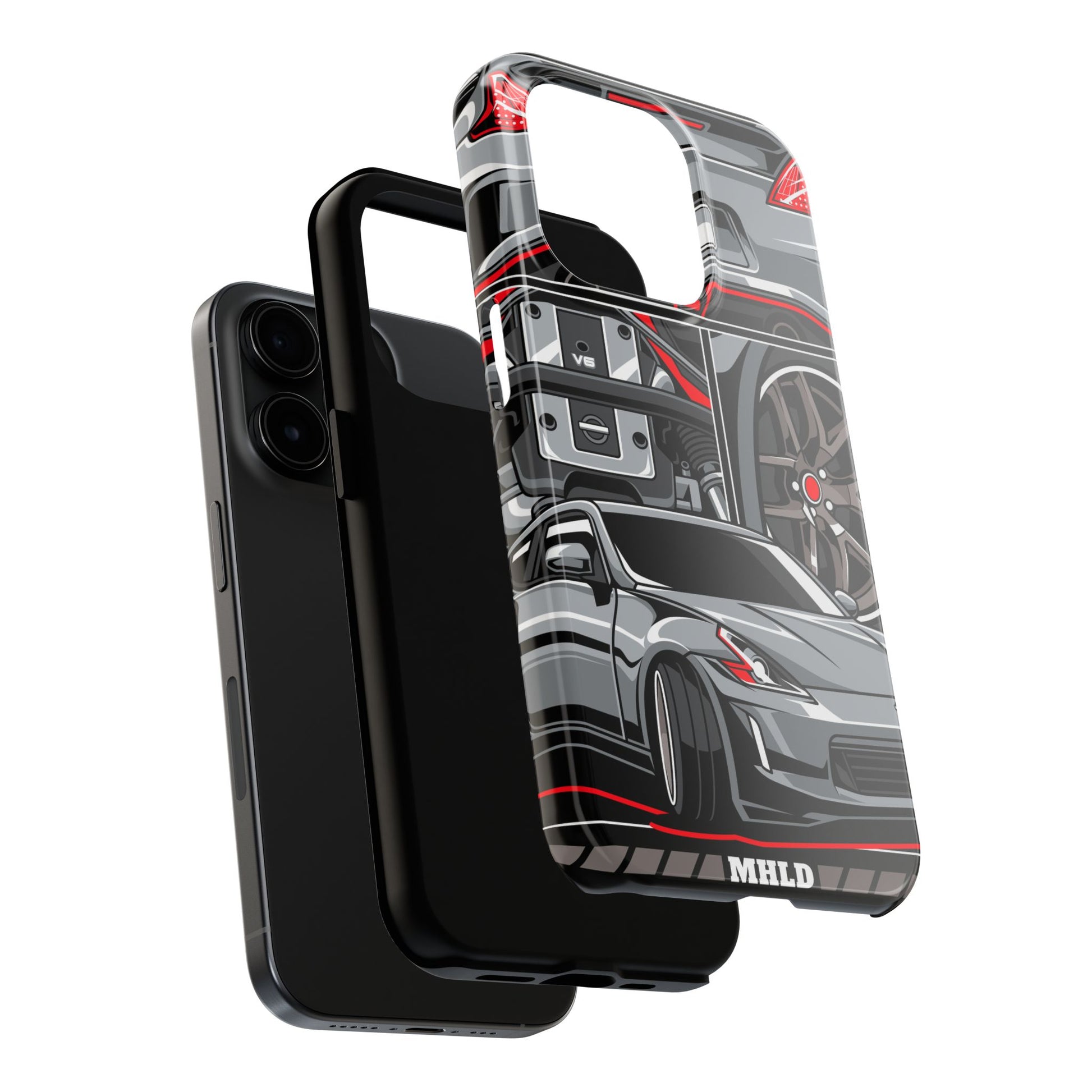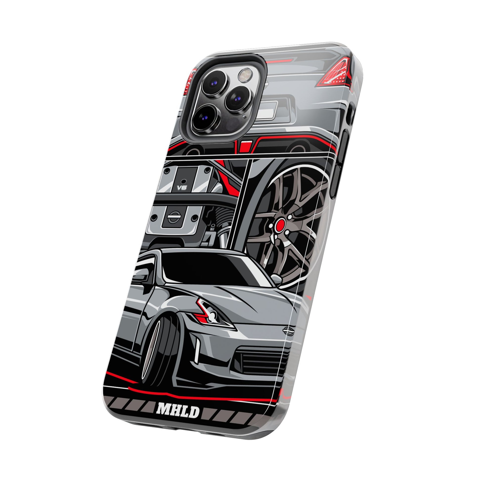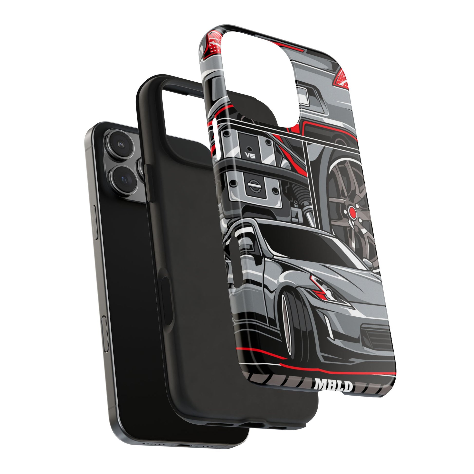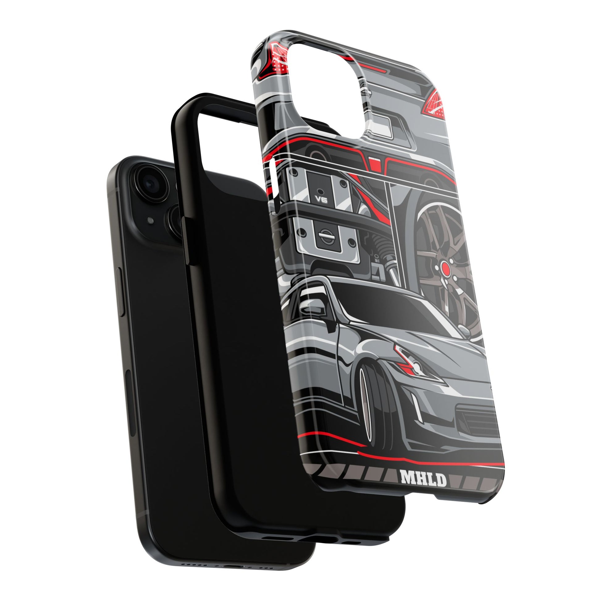 This slim, glossy phone case brings street-tuned attitude to your everyday carry. Bold automotive art wraps the polycarbonate shell in layered panels of a lowered sports car, wheel detail and mechanical accents rendered in crisp grayscale with pops of red. The two-piece construction—rigid Lexan outer and flexible TPU liner—locks the design into a shock-absorbing system that lays flat against surfaces while the raised bezel helps keep the screen off rough surfaces. Weather-resistant UV protection preserves the vibrant print so the artwork stays sharp through drives, washes and sun-soaked days. It’s lightweight, supports wireless charging, and fits like a second skin for drivers and car-enthusiasts who want their phone to match the garage vibe.