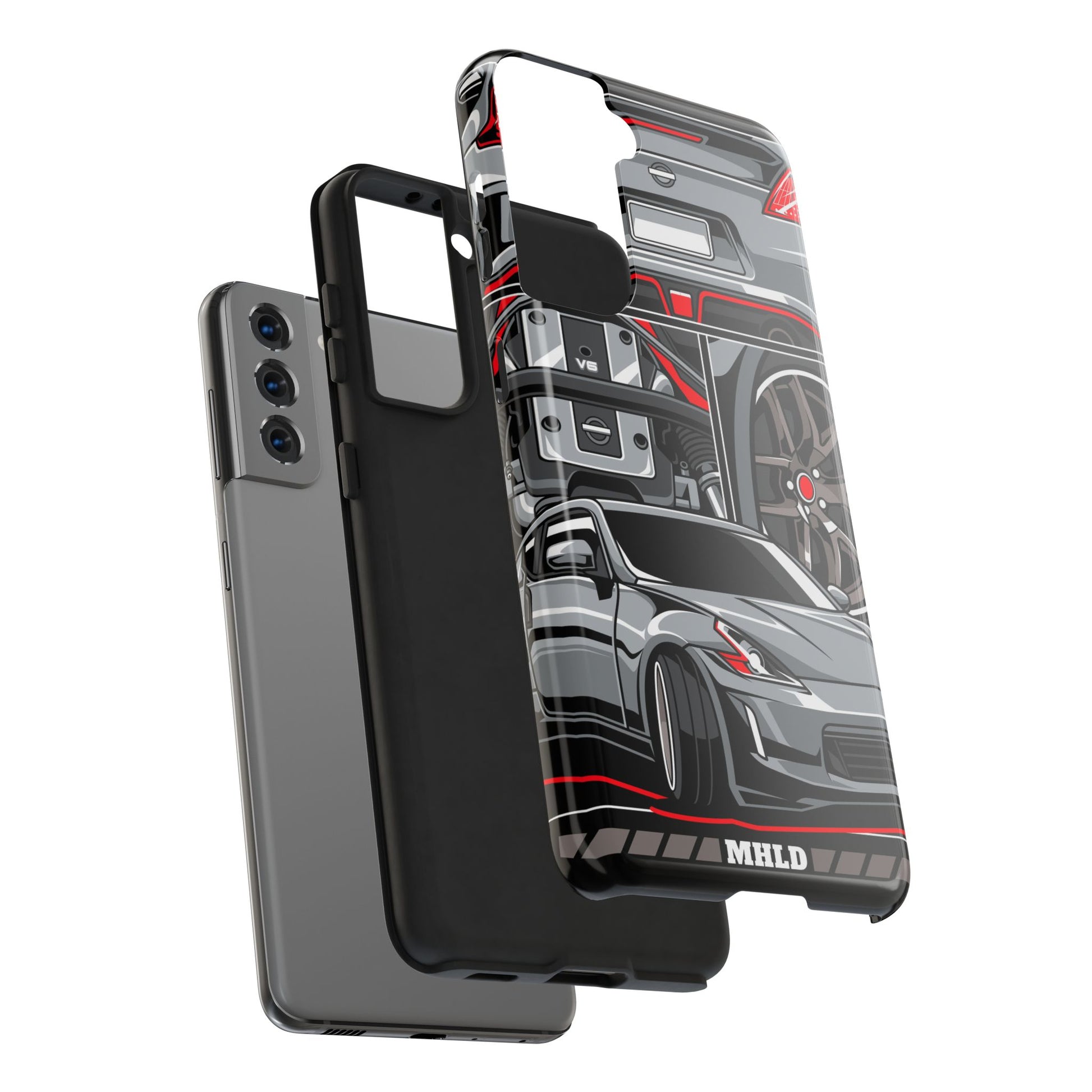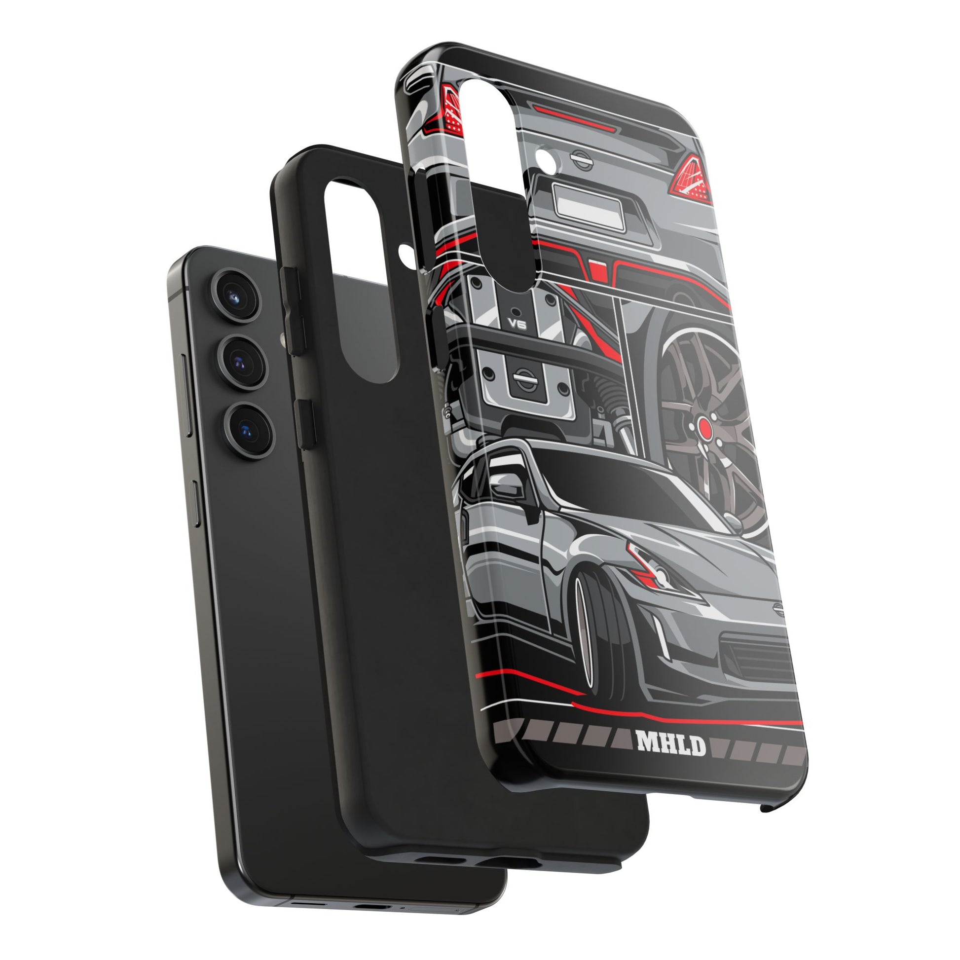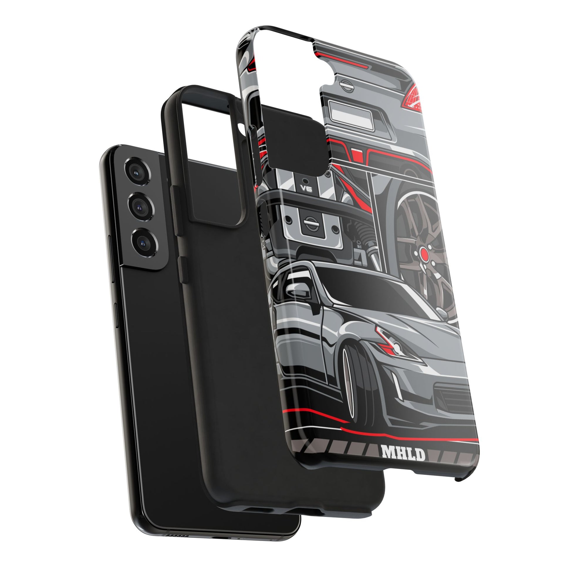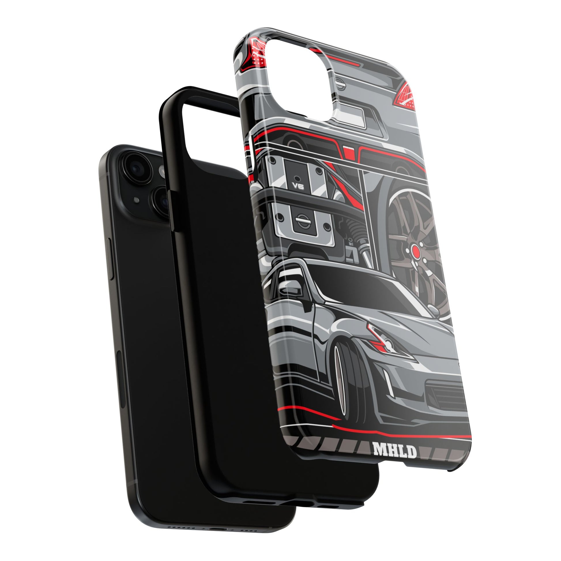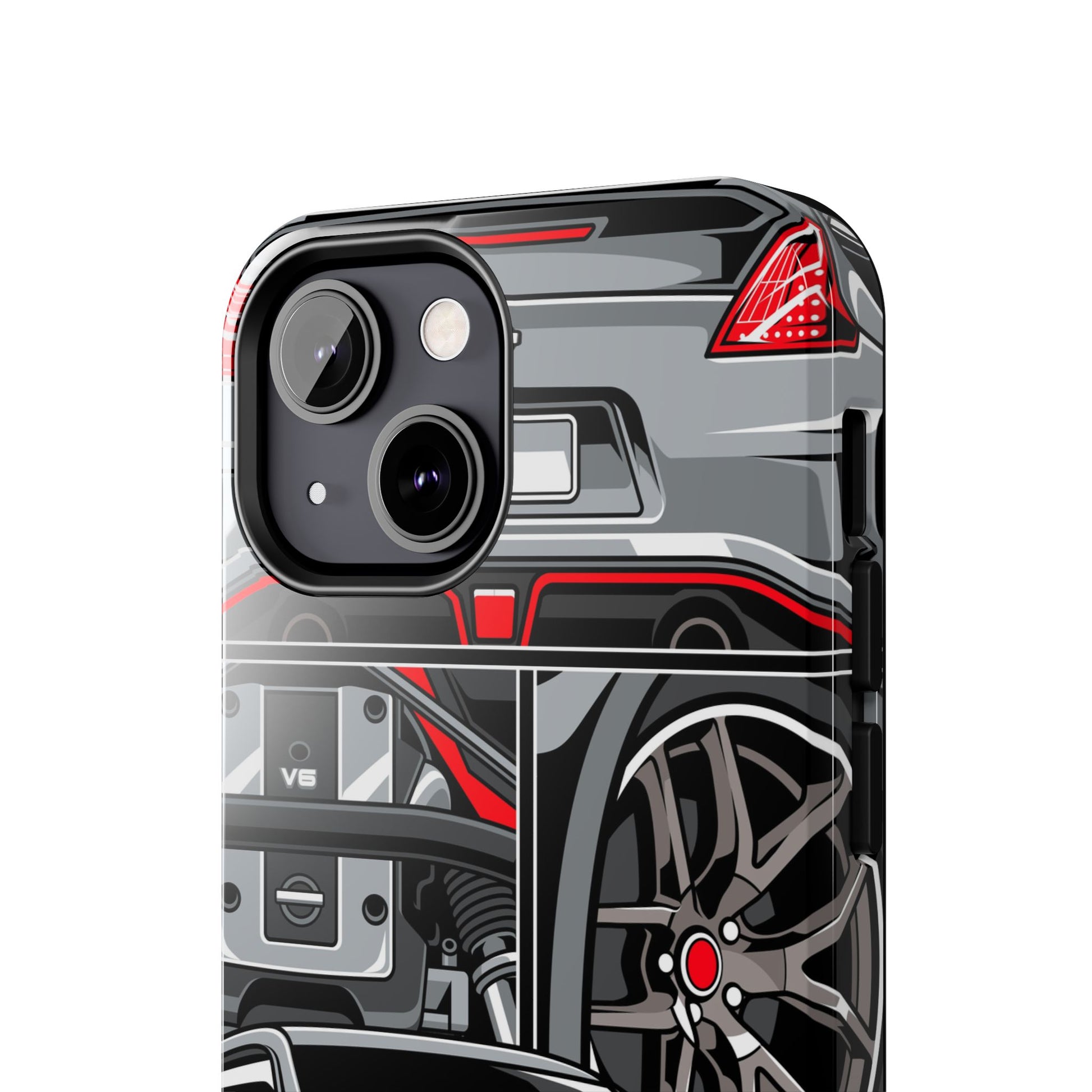 This slim, glossy phone case brings street-tuned attitude to your everyday carry. Bold automotive art wraps the polycarbonate shell in layered panels of a lowered sports car, wheel detail and mechanical accents rendered in crisp grayscale with pops of red. The two-piece construction—rigid Lexan outer and flexible TPU liner—locks the design into a shock-absorbing system that lays flat against surfaces while the raised bezel helps keep the screen off rough surfaces. Weather-resistant UV protection preserves the vibrant print so the artwork stays sharp through drives, washes and sun-soaked days. It’s lightweight, supports wireless charging, and fits like a second skin for drivers and car-enthusiasts who want their phone to match the garage vibe.